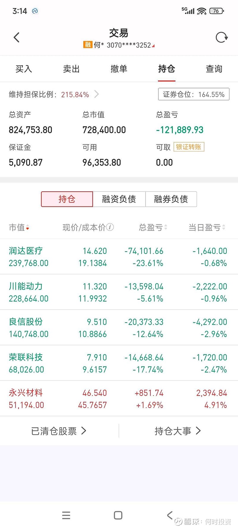 【实盘第296天】今日亏10249元,持仓总市值1110113元,今年赚132129元,其中空余现金9.6万元。今日做T$永兴材料(SZ002756)$ 成功多了100股。碳酸锂期货前天以为做双头了,结果2天又拉上来了,会不会突破?明天见分晓。明天突破的话加仓,不突破获利了结。兄弟姐妹们加油!牛市下半场了,不要割肉,坚持住,前面没有逃顶的就卧倒吧!