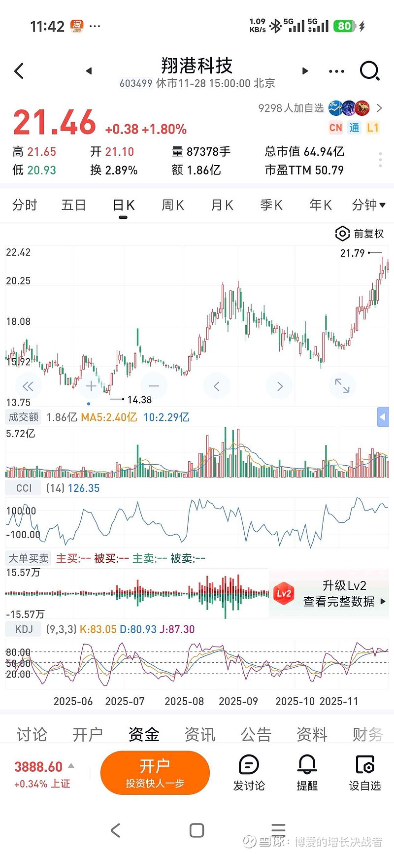 $翔港科技(SH603499)$