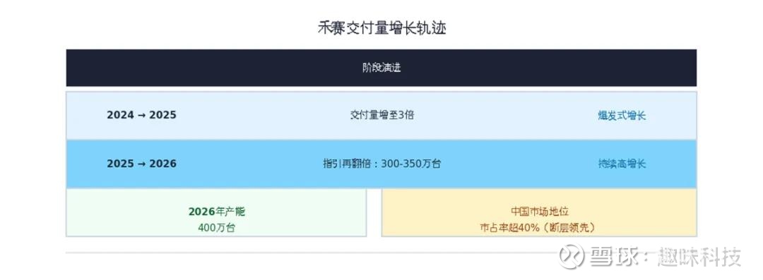 禾赛已将2026年激光雷达出货量指引上调至300万-350万台,年内产能提升至400万台以上。
