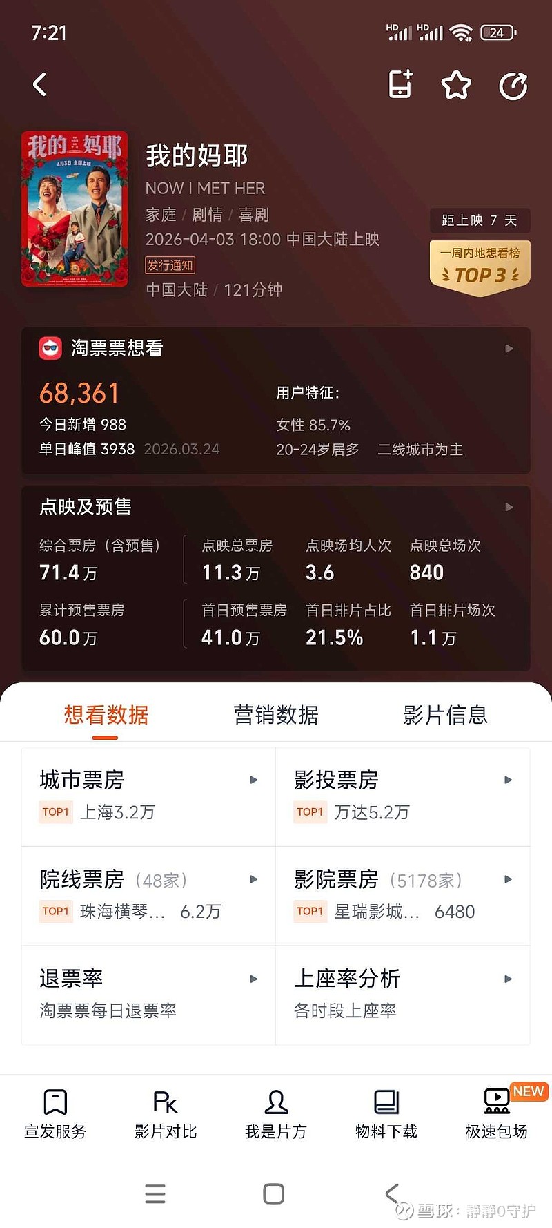 $华策影视(SZ300133)$ 据灯塔专业版,截至3月27日18时40分,2026年清明档新片点映及预售总票房突破1000万,影片《我,许可》《阳光女子合唱团》《我的妈耶》《天才游戏》《超级马力欧银河大电影》暂列前五。老规矩,蹲预售预售破3000万,能有个像样反弹。