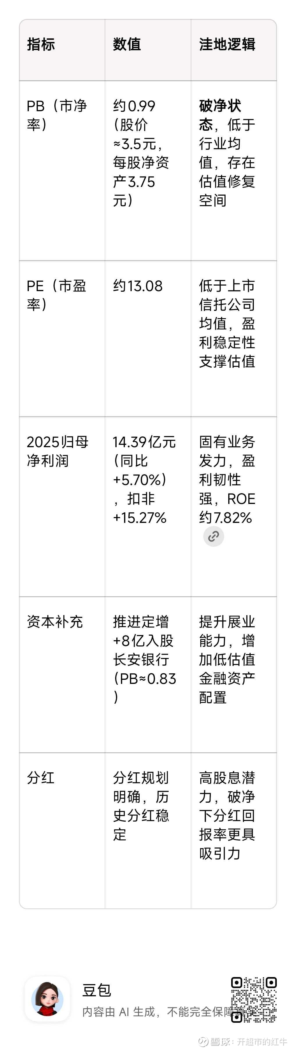 1. 估值洼地明确:破净+低PE,在上市金融股中具备显著安全边际,尤其适合价值型投资者。