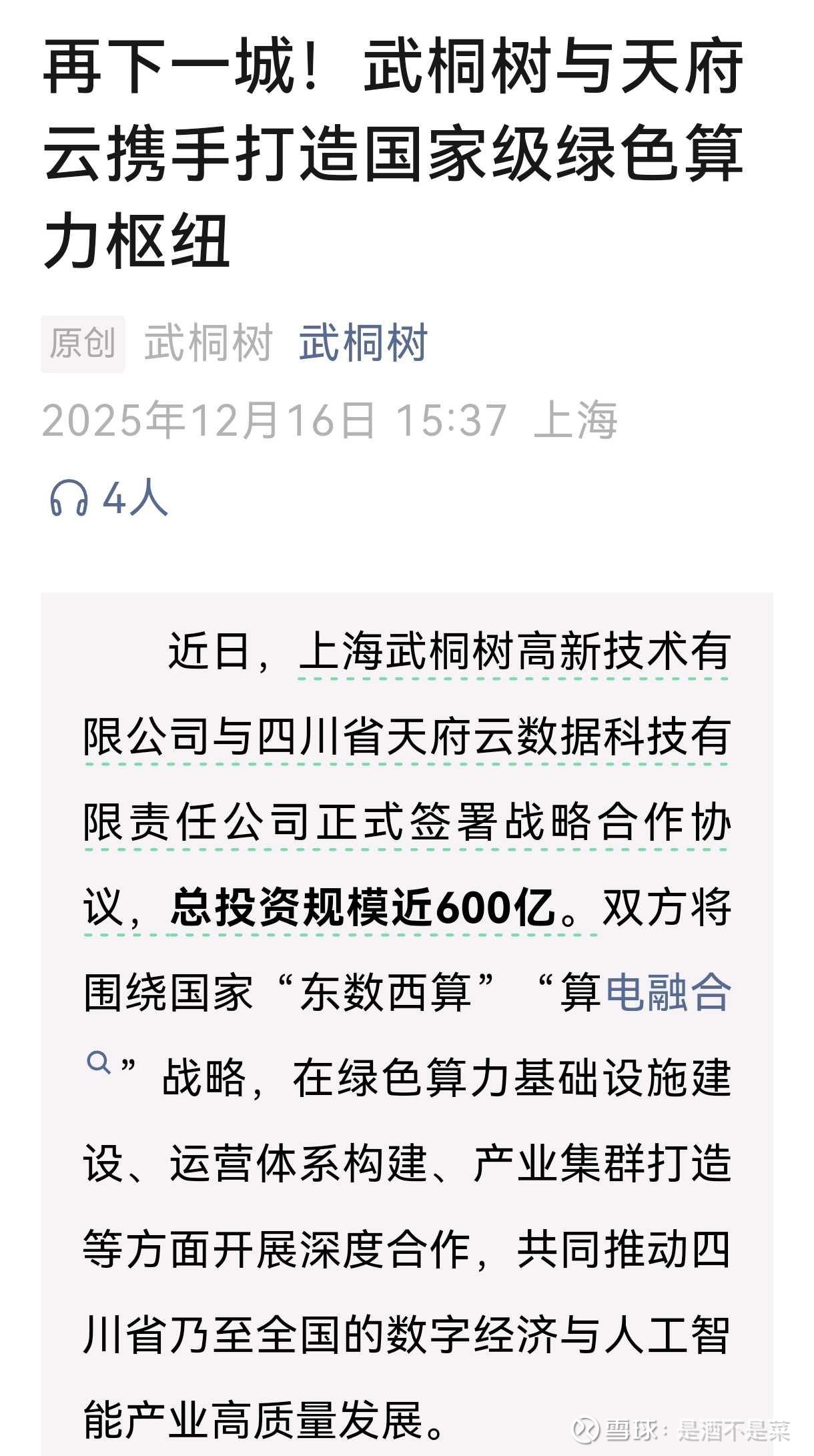 武桐树已在2025年建成万卡算力集群,并在年底与四川省天府云正式签署战略合作协议,总投资规模近600亿。
