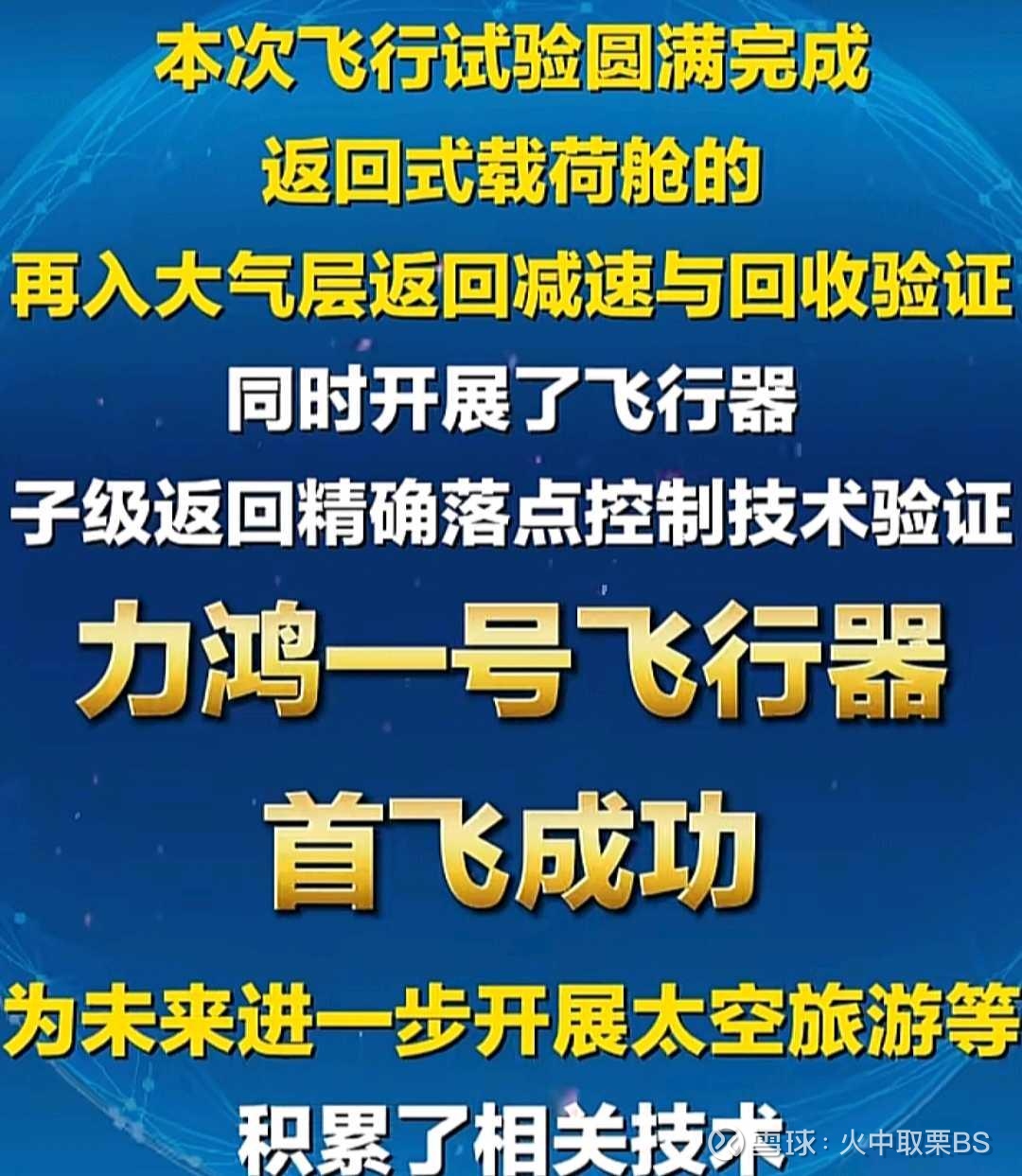 “力鸿一号”是由“中科宇航”研制的一款亚轨道飞行器,本次任务成功验证了返回式载荷舱的再入大气层返回减速与回收,以及飞行器子级的精确落点控制技术。