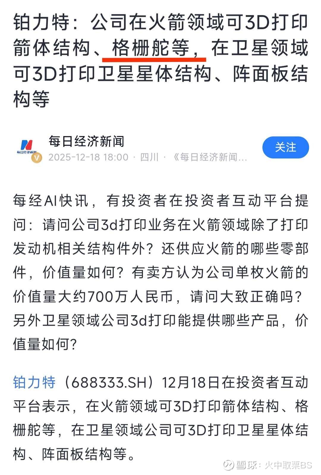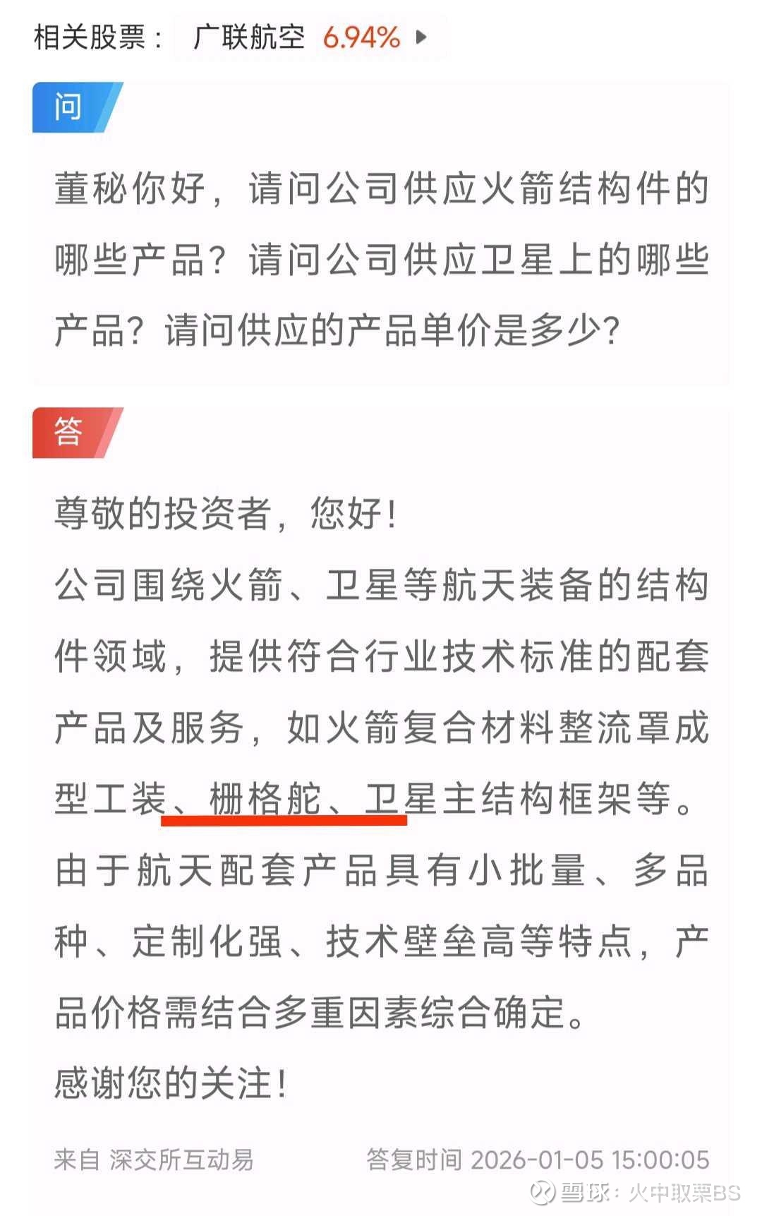 此外,明确能够生产火箭格栅舵的上市公司还有$广联航空(SZ300900)$