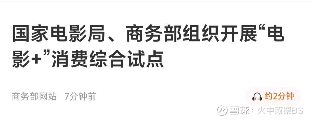 其次、影视方向出了利好,即电影局、商务部组织开展“电影+”消费综合试点。以“电影+”消费赋能经济社会发展,打造电影相关消费新业态新模式新场景。