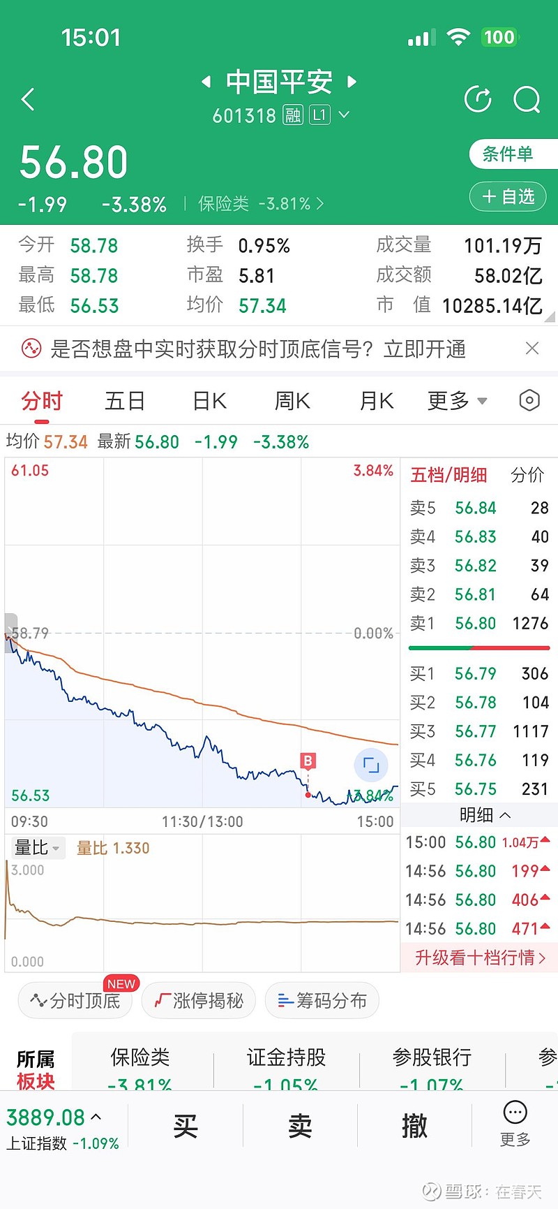 :网格56.73买入200股。