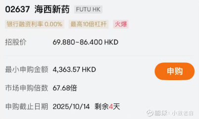 公司10月9日开始招股,招股价69.88~86.4港元,每手股数50股,最低认购4363.57港元,市值55亿~68亿港元,发行数量1150万股,属于药品行业,无绿鞋。