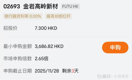 公司11月25日开始招股,招股价7.3港元,每手股数500股,最低认购3686.82港元,市值7.1亿港元,发行数量2430万股,属于其他金属及矿物行业,有绿鞋。