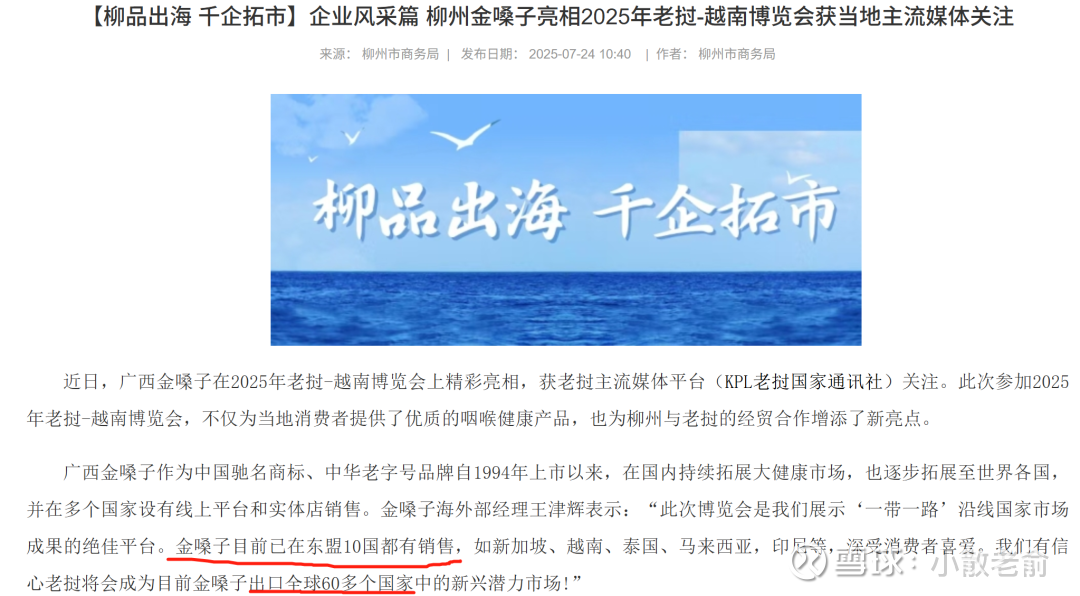 关于金嗓子海外市场拓展,虽然没有具体销售数字,但是当地商务局和媒体就广交会的报道显示金嗓子产品已远销全球60余个国家,不仅实现了对东盟10国的全覆盖,还成功进入了中东、韩国、印度等市场,甚至成为首个进入印度药店渠道的中国咽喉品牌。在RCEP和“一带一路”的推动下,海外市场有望贡献可观的增量。