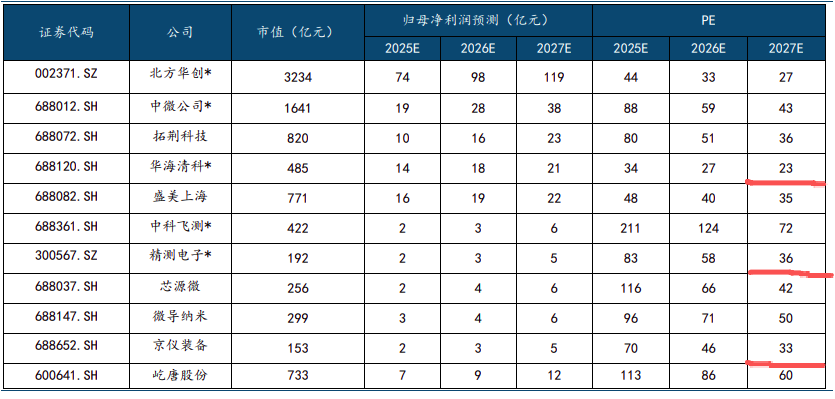 北方华创(002371,买入)、盛美上海(688082,买入)、中微公司(688012,买入)、精智达(688627,未评级)、安集科技(688019,未评级)、 上海新阳(300236,未评级)等;