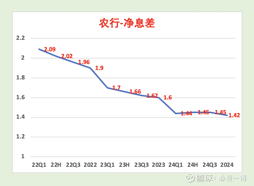 明年农行的净息差跌破1.40关口,几乎是板上钉钉。