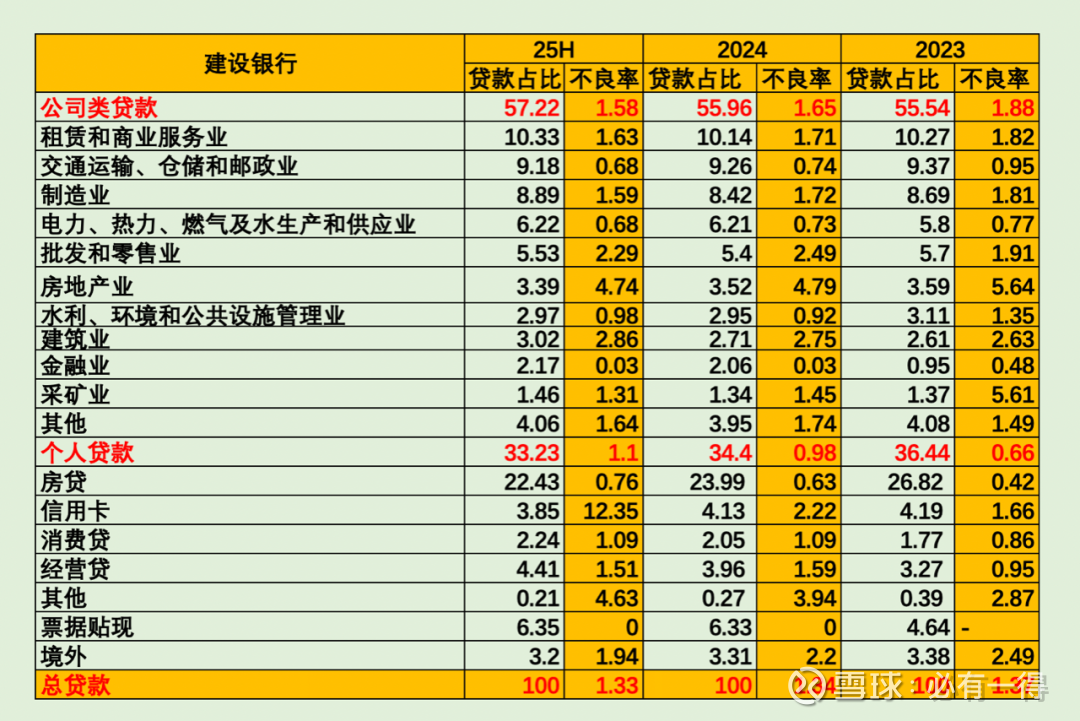 建行的贷款质量非常稳定,没有明显变差或编好的迹象。更重要的是,建行贷款的压舱石「个人房贷」,依旧在给建行提供源源不断的现金流和利润。同时,没有哪个行业贷款有严重恶化的趋势。拨备则出现少有的提升,这是同业中罕见的现象,非常给力