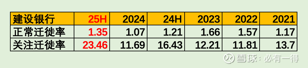 迁徙率是重要的银行贷款质量先行指标。建行正常类贷款迁徙率、关注类贷款迁徙率都出现明显上升,说明贷款质量承压,需要进一步结合年报判断。