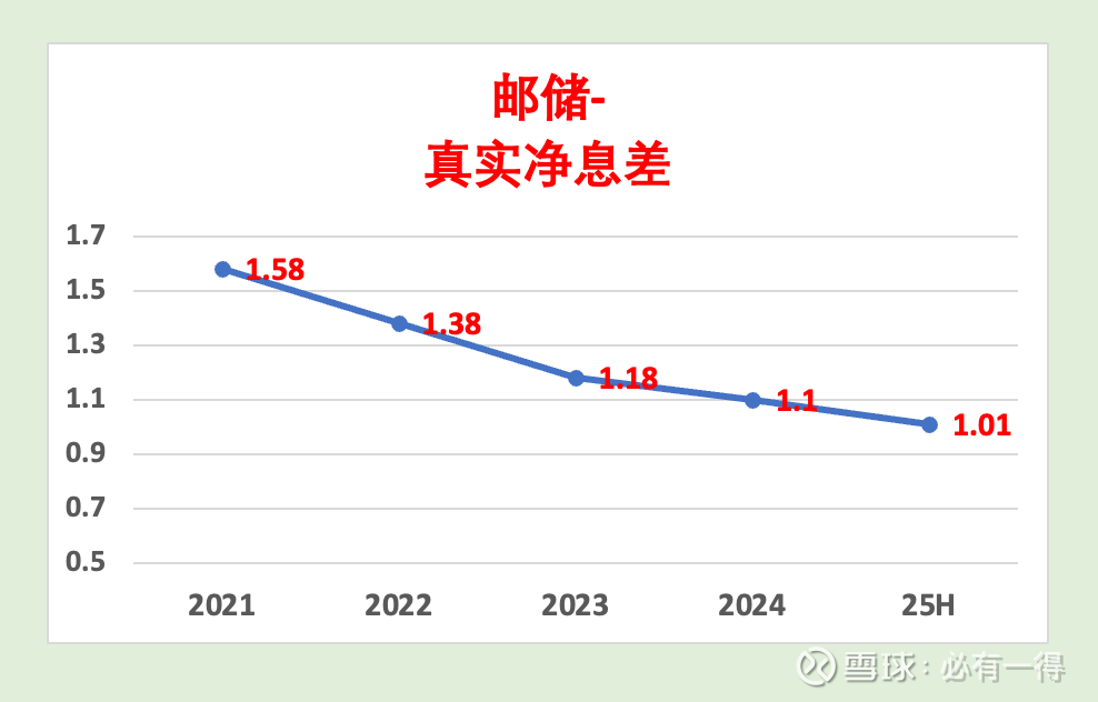 邮储银行的真实净息差(扣除代理费后)是1.01,较年初下降9pbs。意味每配置1亿生息资产,毛利只有101万。年底很可能会跌破1%。
