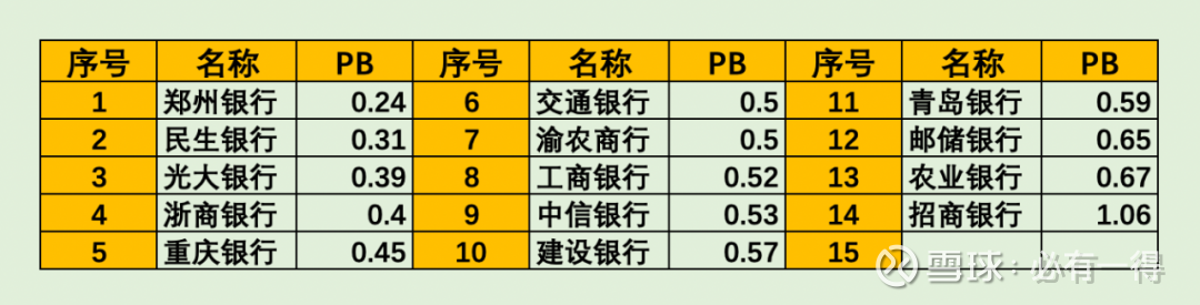 最近半年报披露完毕,内银股的估值已全部更新。28家内银股,剔除部分没有成交量或边缘性银行,比如盛京银行,将剩余的14家主要银行整理并排序,分享给大家。