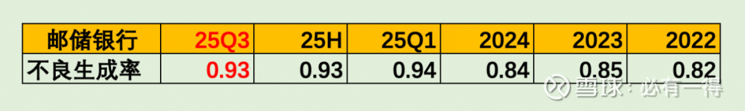 我认为1年内,邮储的贷款质量还会继续下滑。