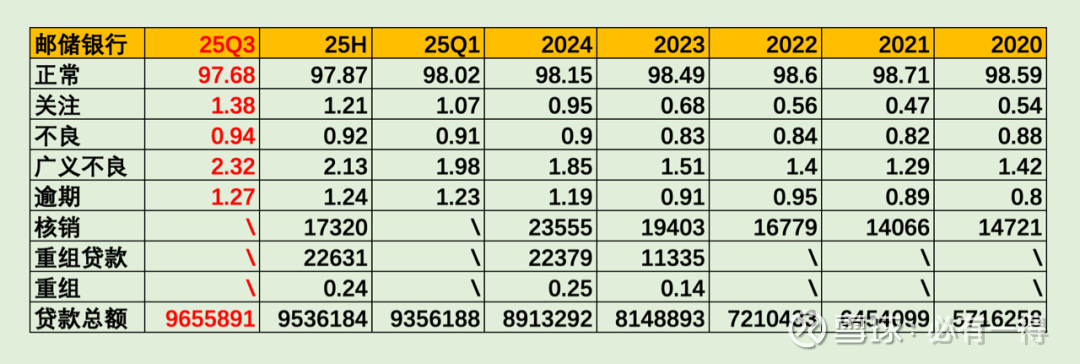邮储的Q3贷款质量下滑明显,符合我在一季报、半年报时的预测,但幅度略大超出我的预期。关注类贷款做为不良的蓄水池,目前还在激增,未来贷款的劣变压力巨大。