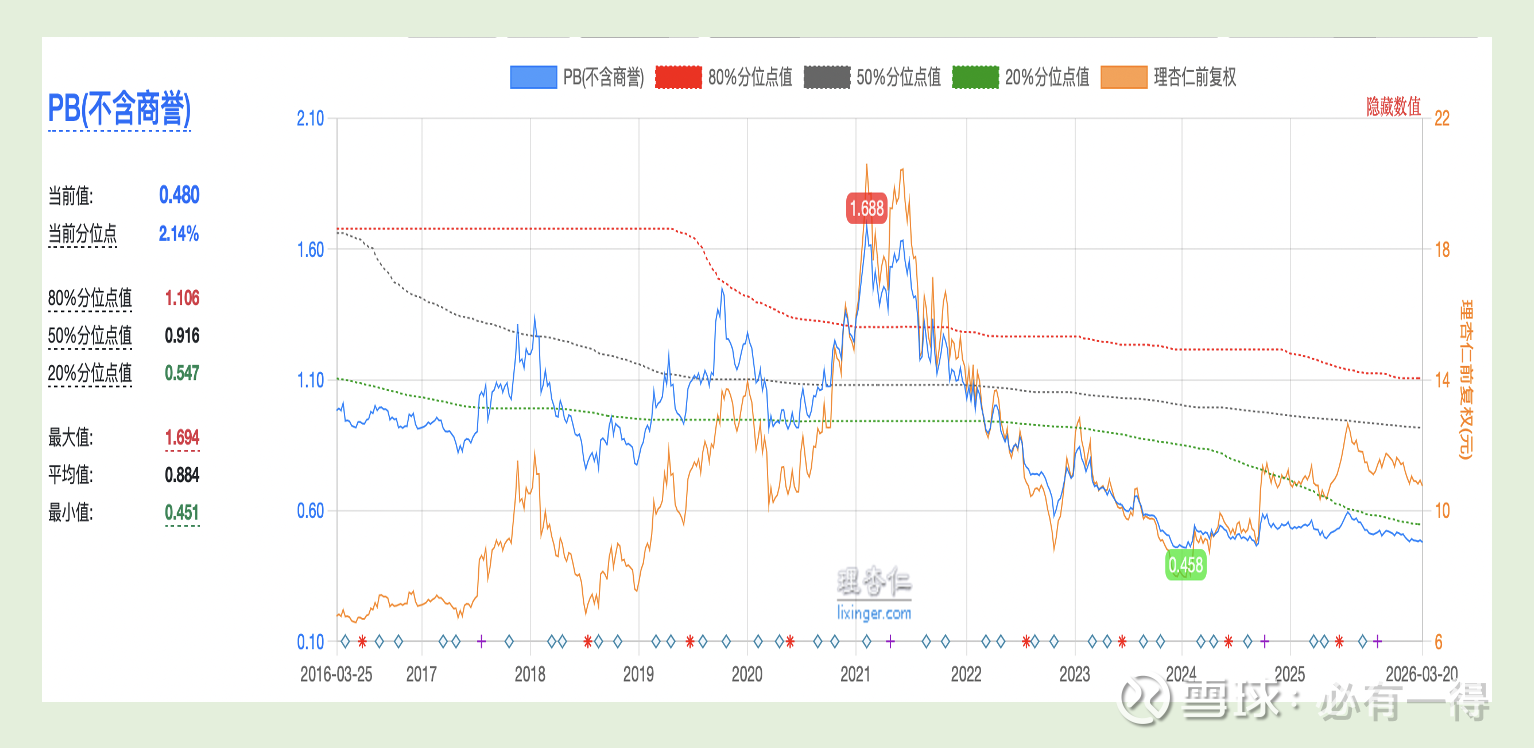当前PB估值处于近十年百分2%的位置,属于极度低估![]()