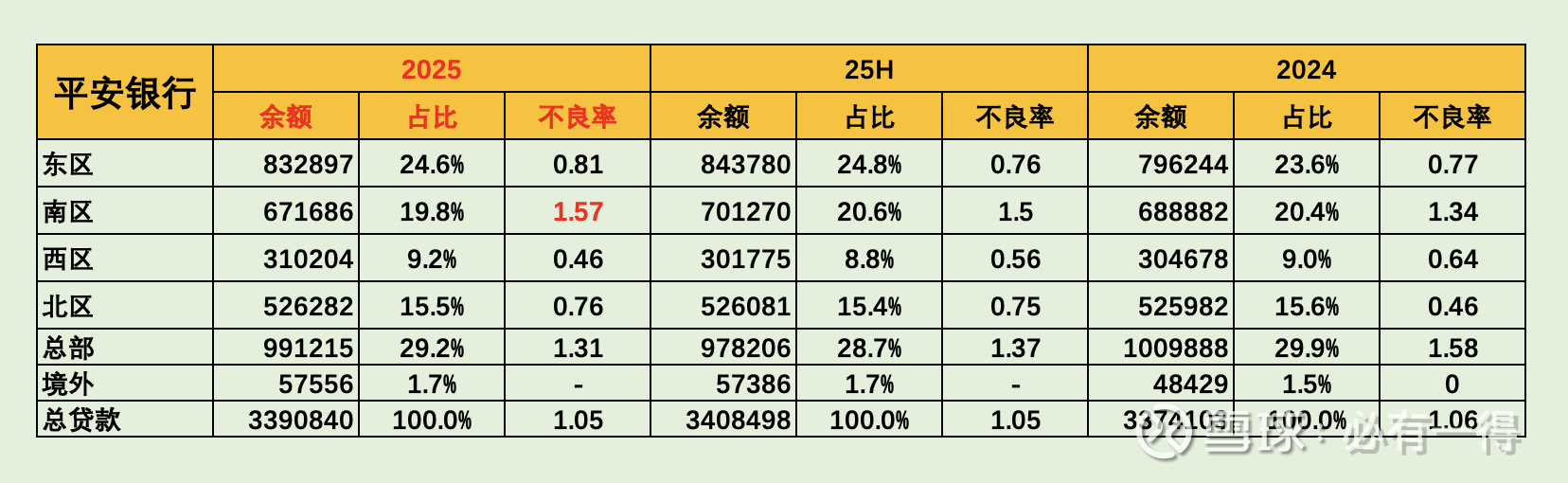 贷款需求旺盛的地区是「东区」,看来长三角地区依旧是平安扩张的重点区域。