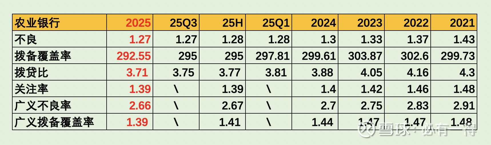 逾期率作为刚性指标,下降幅度略大,无论如何,都不能认为农行的贷款质量好转![]()