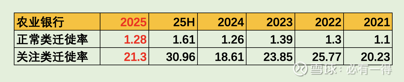 正常类迁徙率上升2个基点,关注类迁徙率上升2.23个百分点。说明农行的贷款质量劣变压力加大。