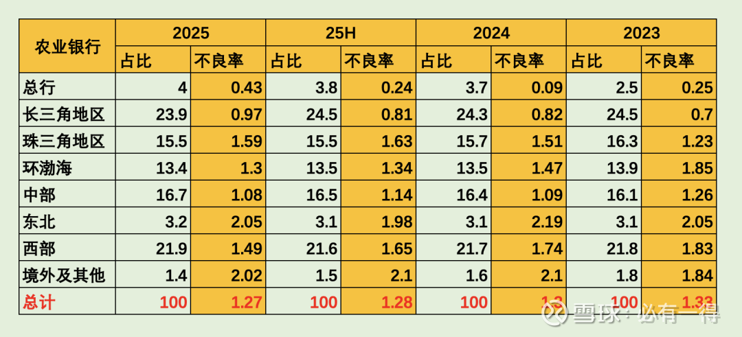 农行的财报分析,不单独分析县域金融,都算不合格。毕竟50%资产、50%一个手由此贡献,这是农行和其他国有大行最大的区别。