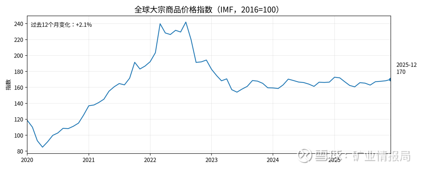 全球大宗商品价格指数(2016=100)(数据源:FRED/IMF)
