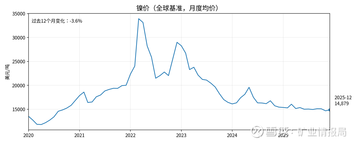 镍价月度均价(美元/吨)(数据源:FRED/IMF)
