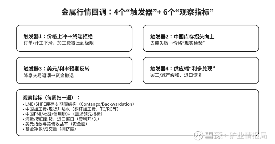 · 短期别只看K线:盯住【订单/开工】【库存】【现货升贴水/加工费】【美元与利率】这四组数据。