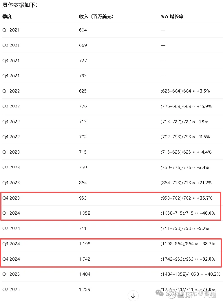 供参考:AppLovin的季度营收yoy增长率趋势,股价在2024年初和2024年底的拐点都跟营收加速相对应。(数据由AI生成的。。。)