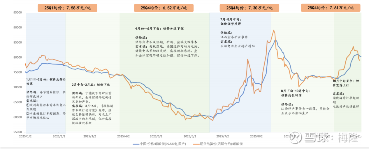 b)2025下半年,宜春矿证危机导致全市锂矿面临停产风险,刺激锂价上行;而随着事件落地,价格回归理性;临近年底,对26年需求的展望成为锂价波动的主要推手。