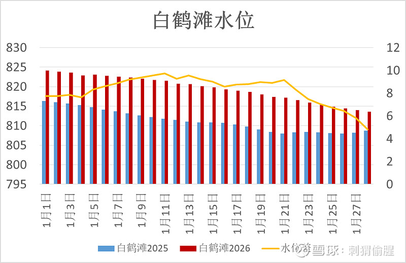白鹤滩水位813.56米,比去年同期高了4.81米。