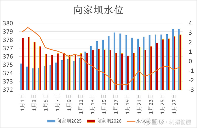 向家坝水位378.64米,比去年同期低了0.63米。