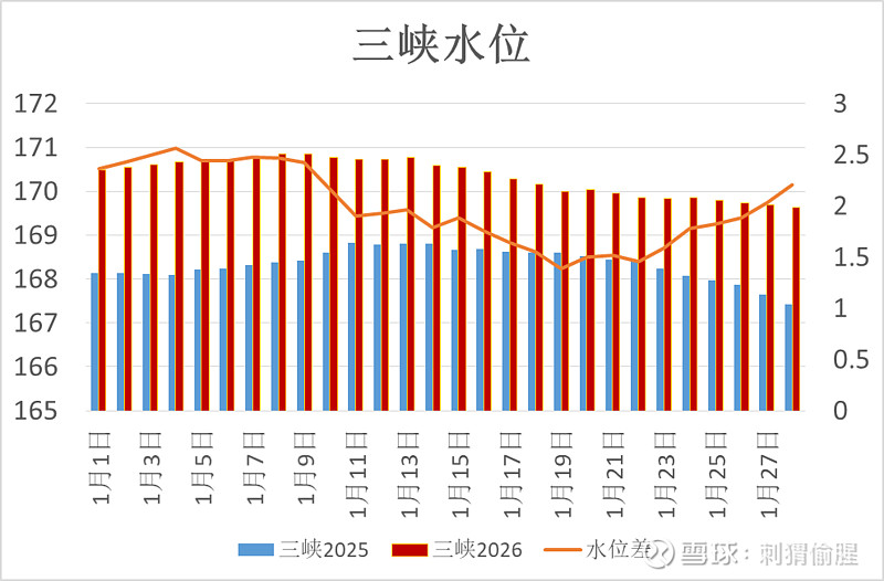 三峡水位169.63米,比去年同期高了2.21米。
