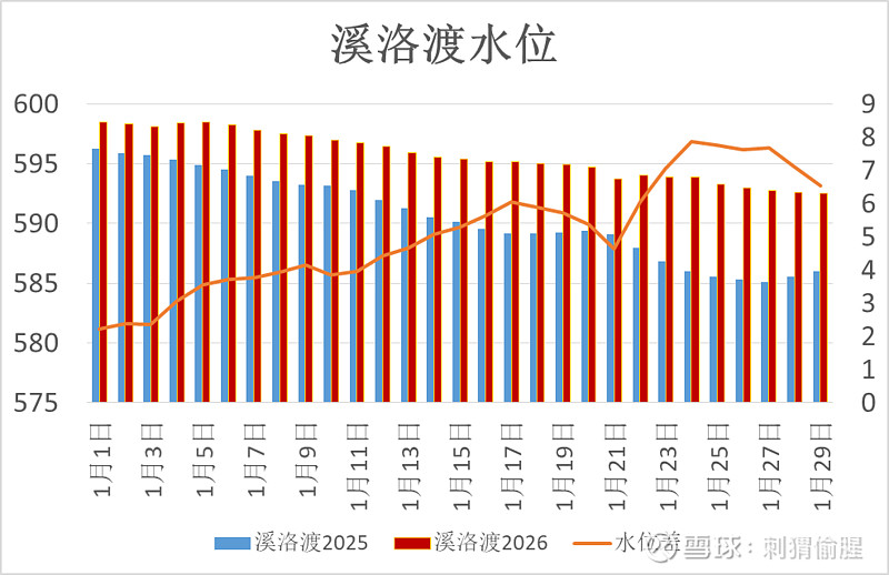 溪洛渡水位592.51米,比去年同期高了6.53米。