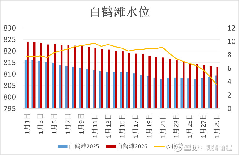 白鹤滩水位812.94米,比去年同期高了3.59米。
