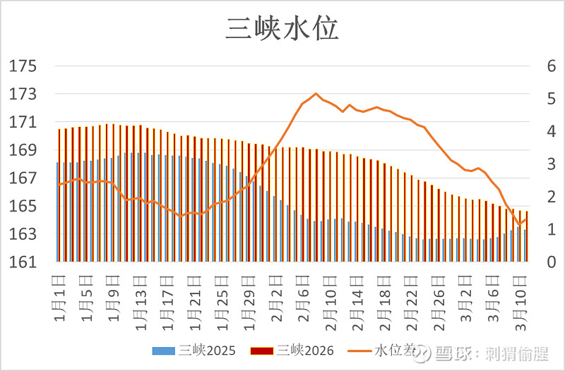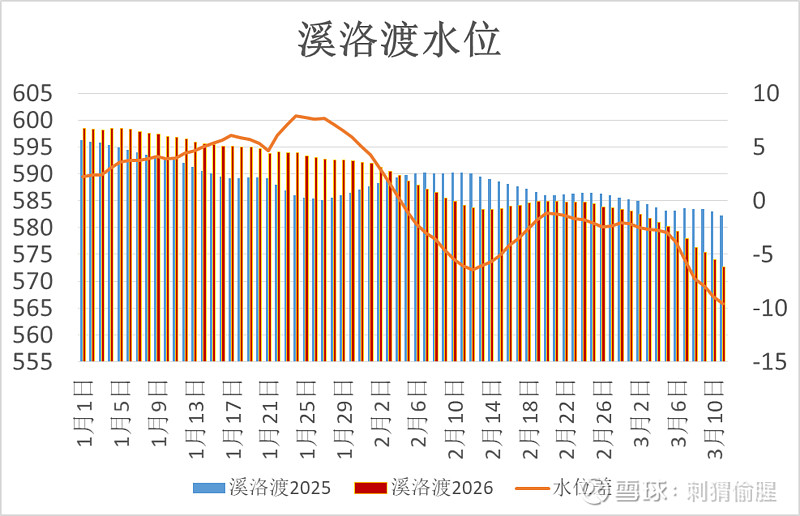 溪洛渡水位572.61米,比去年同期低了9.58米。
