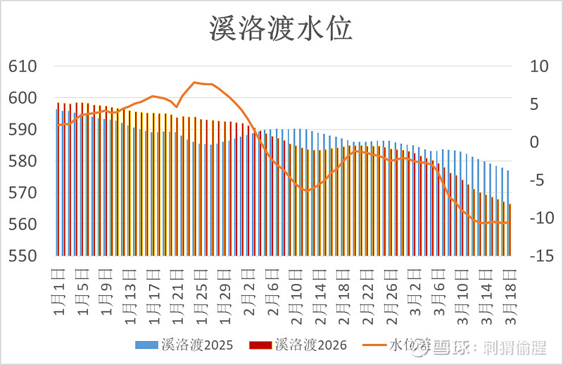 溪洛渡水位566.45米,比去年同期低了10.57米。