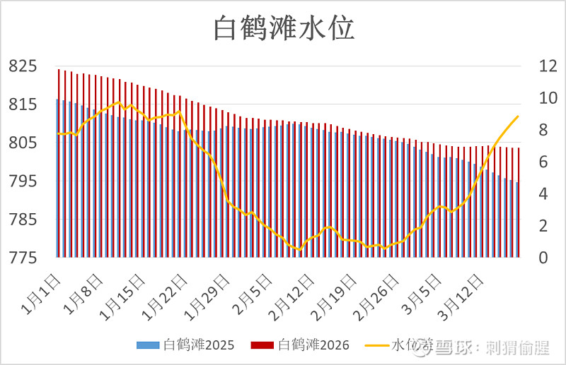白鹤滩水位803.58米,比去年同期高了8.85米。