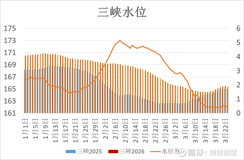 三峡水位165.39米,比去年同期高了0.4米。
