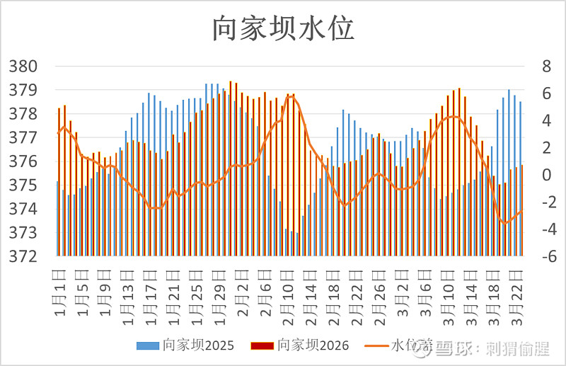 向家坝水位375.85米,比去年同期低了2.66米。