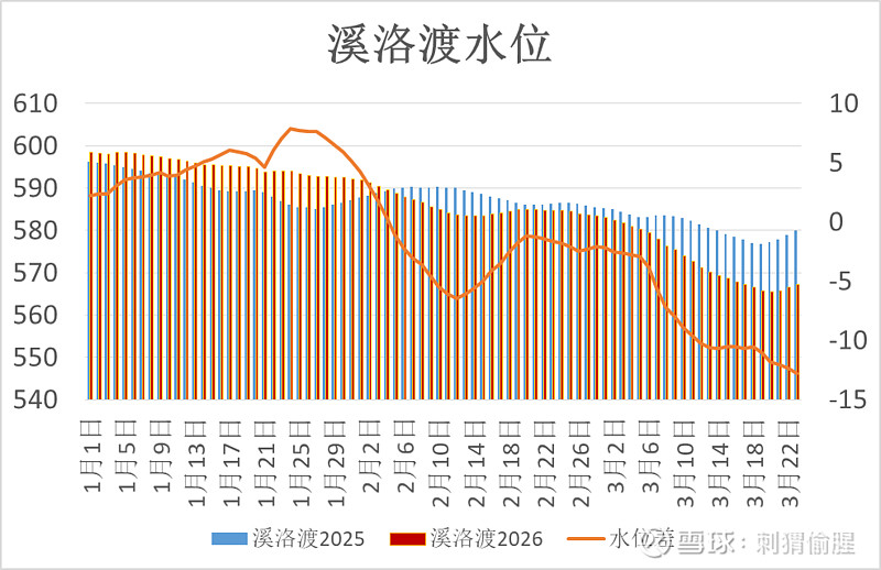 溪洛渡水位567.12米,比去年同期低了12.83米。