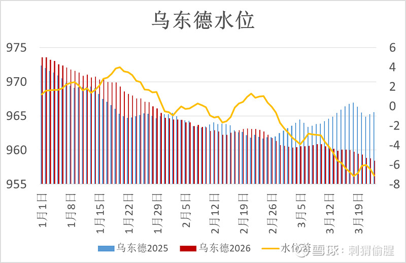 乌东德水位958.44米,比去年同期低了7.12米。