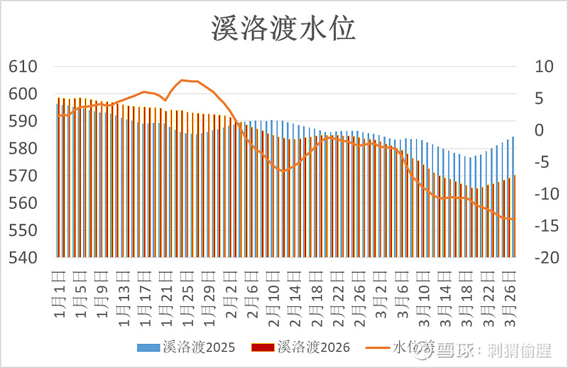 溪洛渡水位570.2米,比去年同期低了13.98米。