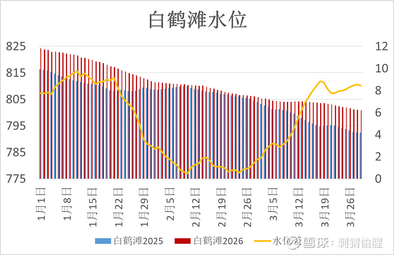 白鹤滩水位800.79米,比去年同期高了8.43米。