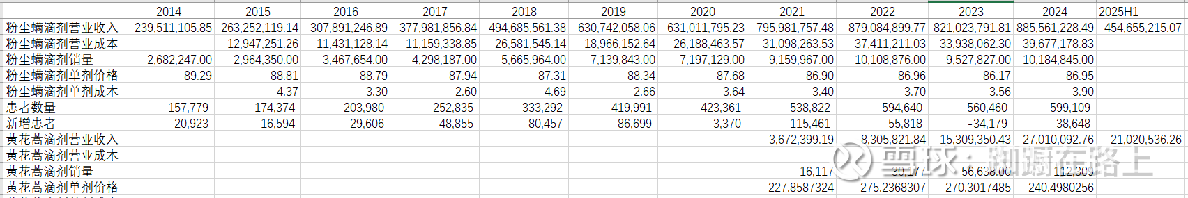 再拉长时间看,2023年公司运营最差,当年量价齐跌,2024年开始恢复,从今年上半年营收增速看,增速有加快的趋势。另外注意到黄花蒿单价远超粉尘螨滴剂,现在年报中黄花蒿占比还非常小,如果其毛利率也远超粉尘螨,净利润的增长速度会超过原来的估计,现在看2026年报也许会出现相关数据。