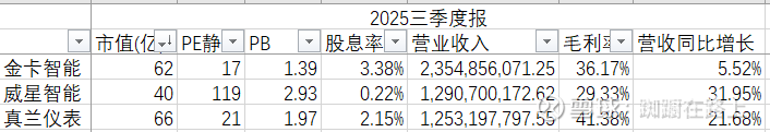 三季度财报初略看下来,个人更看好真兰仪表,三季度营收和净利润同步增长都20+%,最近管理层又在增持。唯一的担心就是财报相比同行太优秀了,有点不真实,等25年报出来再看吧。