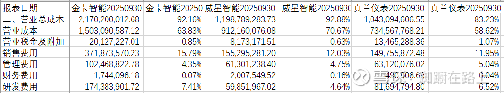 这行业也是比较特殊的行业,看看销售费用历史。2024年金卡智能销售费用/营业收入的比例最高,打16.81%,威星智能也有14.81%。真兰仪表只有11.05%。看了下销售费用明细,真兰仪表的销售服务费相对特别低。