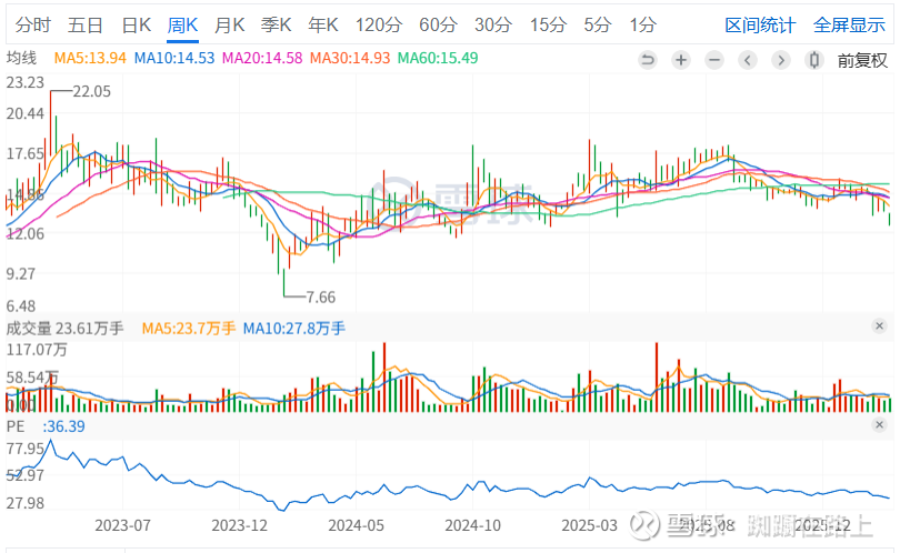 公司现在PE约35,看起来不低,然而如果减去44亿金融资产和大额存单,其PE约16,再考虑到业务二的增长,这PE就不高了,再看PE历史,现在的PE已经接近历史低点。
