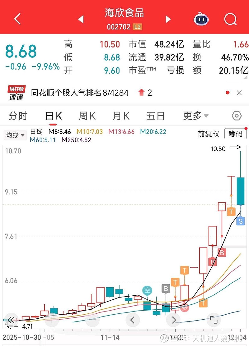 海欣食品虽然和海王生物是同身位的,但是今天海王生物拉板还不会进池子,海欣食品却会(因为首板之前多涨了一天)。因此这两者Pk海王的赢面更大,当然,有些人会说干嘛怕异动监管啊,往上干不就行吗?怕监管的都不是龙头,话虽这么说,但是没监管总比有监管好是吧?侧面也说明了海欣食品还是在平潭/合富周期之下。